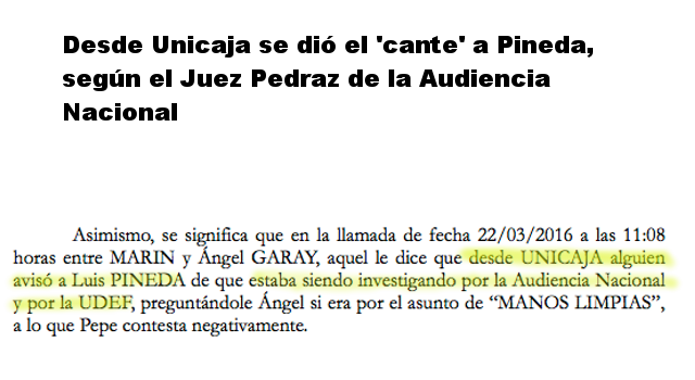 «DESDE UNICAJA ALGUIEN AVISÓ A PINEDA»