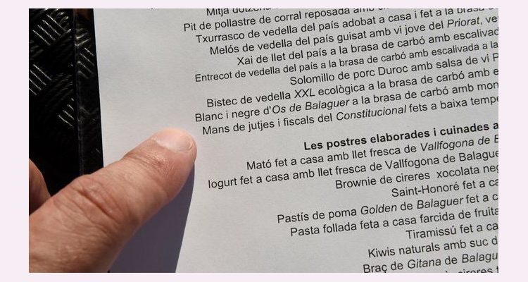 Imagino que ya le habran mandado por whatsapp la carta de ese restaurante de Balaguer, en Lérida, llamado la Nueva Fuente Blanca, especializado en comida mediterránea y que tiene entre sus platos dos especialidades que serán las más demandadas por los correligionarios de Mas, Puigdemont y Torra. Hay que aclarar que, cerrando su negra carta, el dueño ha colocado un explícito “Salut i República”, con una apostilla que dice “¡¡¡Que Deu nostre senyor vos guardi!!!”.