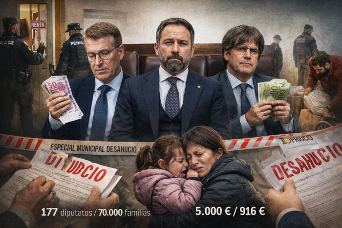 177 diputados que cobran hasta 5.000 euros al mes votan contra un escudo que protegía a 70.000 familias vulnerables frente al desahucio.