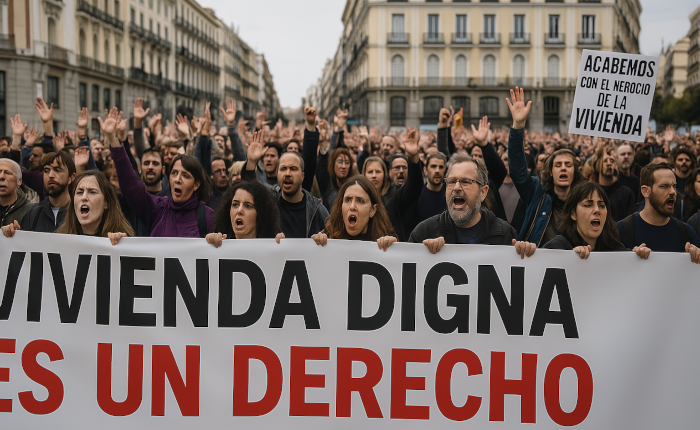 Una manifestación por el derecho a la vivienda digna ha reunido este sábado en Madrid a miles de personas para pedir la bajada de las alquileres y el fin de la especulación inmobiliaria, en tanto que han advertido la posibilidad de llevar a cabo una huelga de alquileres para lograr sus objetivos. La marcha en la capital ha movilizado a más de 150.000 personas, según el Sindicato de Inquilinas e Inquilinos y otras organizaciones sociales.