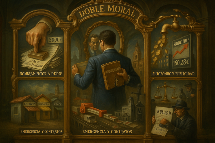 Sin coherencia no hay credibilidad. Si prometes despolitizar, no puedes multiplicar la libre designación; si denunciabas el autobombo, no puedes batir récords de publicidad; si te indignaba el coste de Canal Sur, no puedes firmar el mayor contrato-programa de la serie; y si abanderabas la lucha contra el “dedazo”, no puedes prorrogar convenios mientras están bajo investigación. El BOJA pesa más que cualquier eslogan. En Andalucía, la doble moral ya no es una metáfora: se mide en millones.