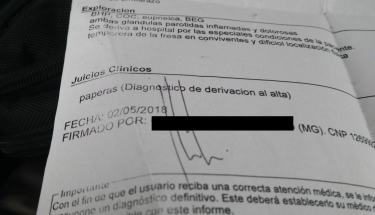 De hecho, la propia mujer ha desconocido que el médico ACL había dictado una impresión diagnóstica de paperas hasta el día de ayer, miércoles.
