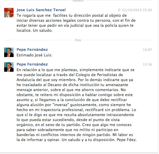 Por cierto, mi columna semanal – El sismógrafo- se interrumpió abruptamente tras publicar que la Guardia Civil iba a solicitar al juez del ‘Caso Marismas’ la imputación de José Luís Sánchez Teruel, ex responsable de regadíos de la Junta, diputado y SG del PSOE de Almería, un hombre de Susana Díaz. Avendaño levantó mi artículo sin ni siquiera decírmelo, tras recibir la llamada de Sánchez Teruel quien, a renglón seguido, felicitó públicamente desde Facebook la «ética profesional» de Avendaño como director por haber eliminado mi articulo «inveraz y despreciable» en tan reconocido y prestigioso medio que dirigía.