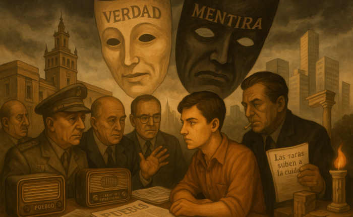 Mi padre trabajaba en el servicio de publicaciones del sindicato vertical franquista y solía hablar habitualmente con periodistas del régimen, como Manuel Benítez Salvatierra “César del Arco”, delegado del diario “Pueblo” en Andalucía y director de la emisora sindical “La voz del Guadalquivir” o con el mismísimo director del diario “Pueblo”, Emilio Romero, del que algunos concienzudos miembros de la brigada político social infiltrados en los círculos de teatro aficionado de Sevilla, solían comentar la aberración que para ellos suponía que un camisa vieja de Falange como Romero escribiera una obra de teatro socialista refiriéndose a “Las ratas suben a la ciudad.”