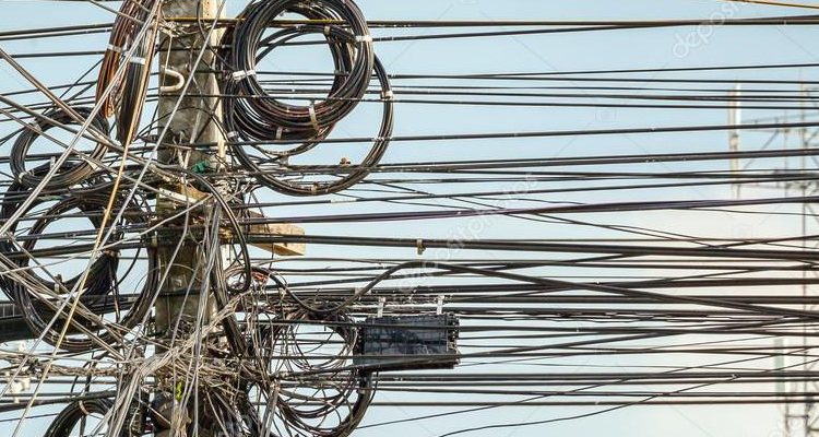 Hace muchos años, un amigo, emigrante en Bélgica me dijo: «Allí no verás un cable: todos van ocultos». Pues según lo por mí observado en nuestras latitudes, sin llegar al anarquismo descrito, tenemos lugares casi semejantes, más con la llegada de las fibras ópticas, dada la imposibilidad de doblarlas en ángulos rectos. Los instaladores, explotados en subconjuntos de contratas por las multinacionales llegan con prisas y tiran las negras lianas en vertical como los pescadores de truchas sus anzuelos y…¡ahí queda eso! Nuevos adefesios tachonan como si de un mal trabajo escolar provocase la ira del maestro. Además, oscuro está, la sarta de pintadas inextricables para satisfacción patológica de los vándalos de la noche.