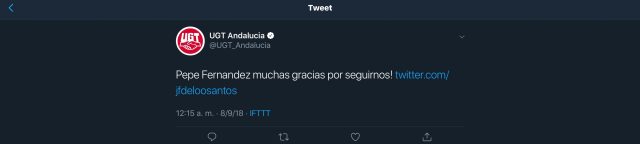 La UGT de Andalucía ha remitido escrito al Presidente de la Asociación de la Prensa sevillana quejándose de las críticas vertidas sobre ellos por el periodista Pepe Fernández, director del digital Confidencial Andaluz, por, según este sindicato venido a menos, verter acusaciones y descalificaciones sin fundamento contra UGT o alguno de sus dirigentes.