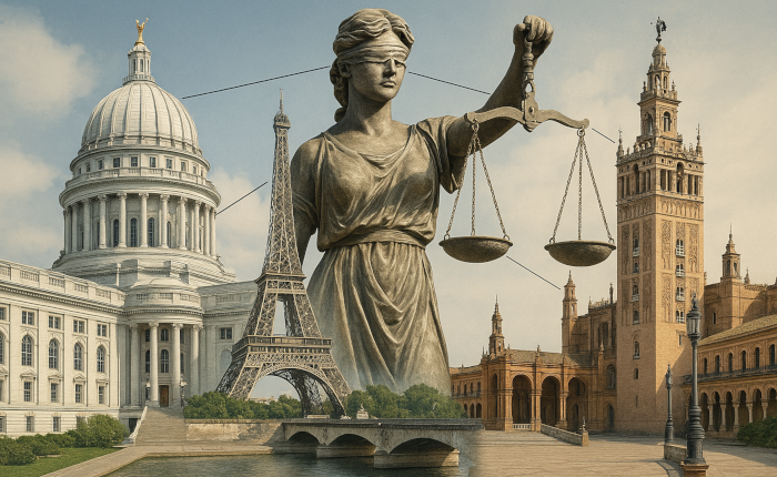 3/ La sentencia que resumí hace unos días en esta columna recaída sobre los diputados del FN francés que había n desviado a los largo de doce años  mas de tres millones de euros para su propio partido y su poder dentro de él ha sido inmediatamente virulentamente atacada no en el fondo, sino en su principio. Se ha presentado como un ataque al pueblo. El tribunal sentenciador ha sido acusado de “eliminar a una candidata”. Y se ha presentado la justicia de los tribunales como una fuerza hostil, al servicio de un supuesto “sistema”, actuando para impedir la expresión de la voluntad popular. Este discurso es la negación de los valores fundamentales de una democracia liberal. El partido de la señora Le Pen ataca la idea misma de que la justicia pueda aplicarse a un actor político.La sentencia ha inflamado la furia de la principal interesada y al tiempo la de una «internacional populista» (Rusia, Israel, Hungría y Estados Unidos), clamando al unísono que la democracia estaba en peligro por esta decisión judicial. Entre ellos las perplejas del desviado patriota señor Abascal, ( en inglés norteamericano dicese Obiscal).