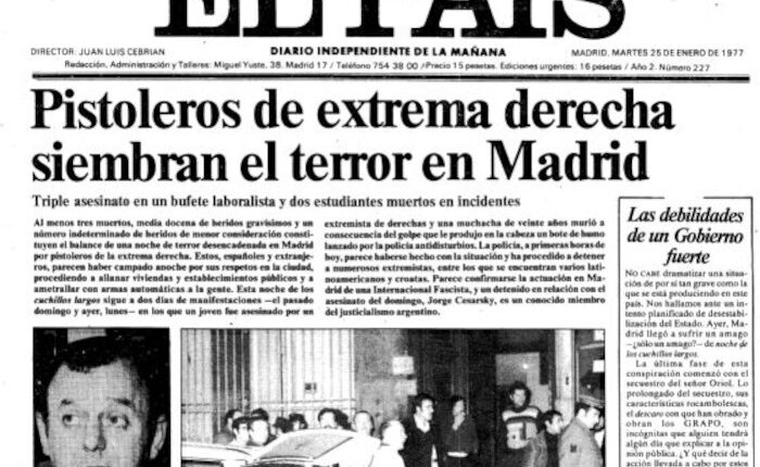 Los abogados, el estudiante y el administrativo fueron asesinados, en una matanza que dejó a cuatro personas más heridas, supuso uno de los puntos de inflexión de la transición política, que estuvo marcada por la violencia descontrolada de militantes de partidos de extrema derecha y distintos elementos de lo que hoy se llaman cloacas policiales y entonces se llamaban simplemente cuerpos policiales. Durante el proceso, llamó la atención la presencia de agentes de paisano dando apoyo a los acusados.